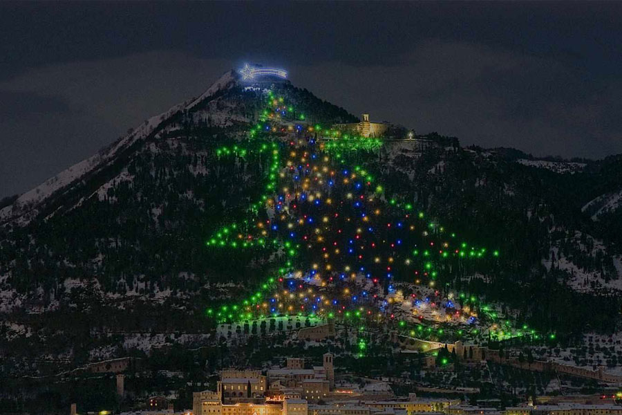 L’intero versante del Monte Ingino è costellato da più di 500 luci che formano l’albero di Natale più grande del mondo, alto più di 700 metri e largo 400. Viene acceso la sera del 7 Dicembre e per un mese è il custode del Natale cittadino.